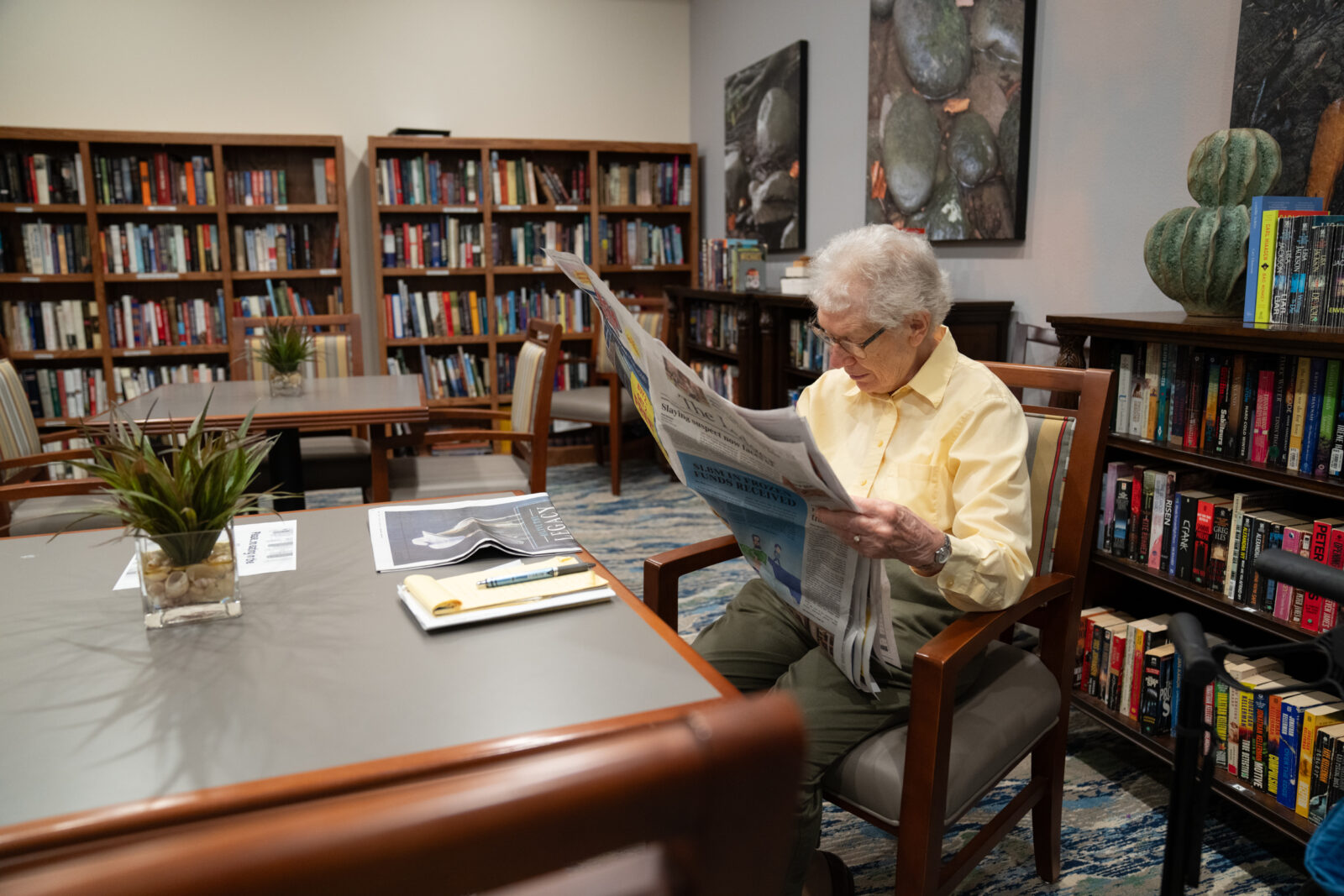 The library at The Glades at ChampionsGate is a secluded space where residents can lose themselves in a diverse selection of books and periodicals. It is a special retreat, a space perfect for reading or reflection.